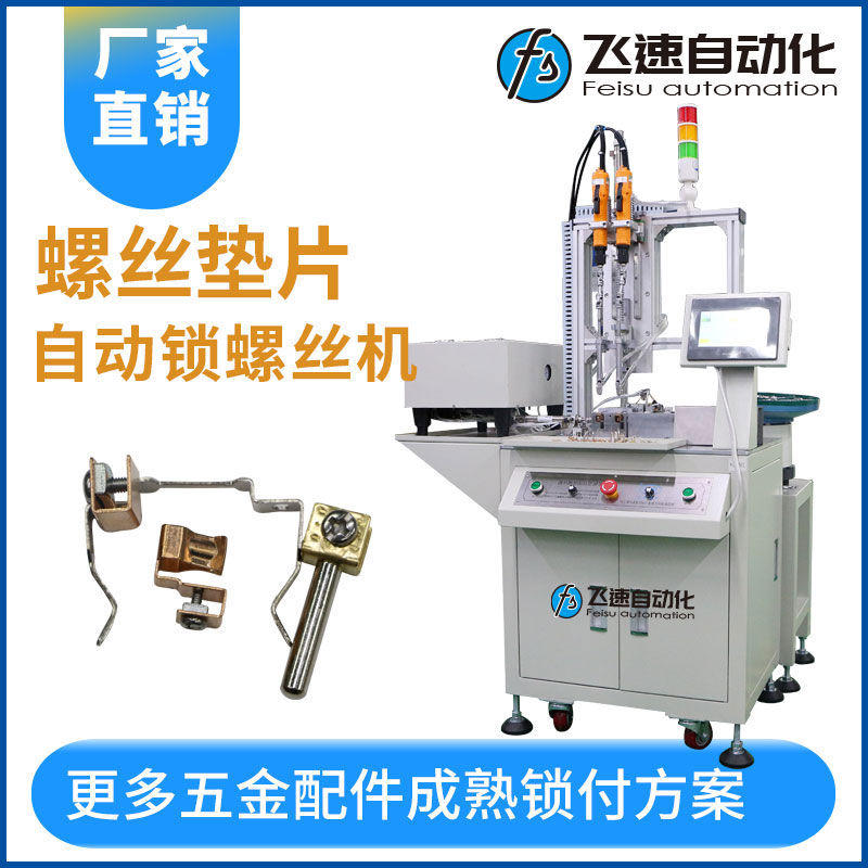 - 產(chǎn)品簡(jiǎn)介: 螺絲墊片自動(dòng)擰螺絲機(jī)實(shí)現(xiàn)將墊片套置在螺絲根部的加工目的,組合后墊片與螺絲不易松脫,組合效果好,操作十分簡(jiǎn)單,只需一名人工輕松操作,大大降低了人工成本,實(shí)現(xiàn)了自動(dòng)化生產(chǎn),提高生產(chǎn)產(chǎn)量效果。 在緊固螺絲都會(huì)和墊片一起配合使用,人工手動(dòng)把螺絲穿過墊片再擰緊,在短時(shí)間內(nèi)對(duì)需求量大的穿好螺絲墊片無(wú)法達(dá)到效果,裝配螺絲墊片的方式就會(huì)降低了效率,無(wú)法滿足生產(chǎn)商的需求。 所以為了克服螺絲墊片人工手動(dòng)裝配效率低,成本高的缺陷,廠家往往會(huì)考慮到生產(chǎn)效率,成本以及產(chǎn)品質(zhì)量等因素會(huì)選擇一款自動(dòng)化組裝螺絲墊片的自動(dòng)擰螺絲機(jī)器。